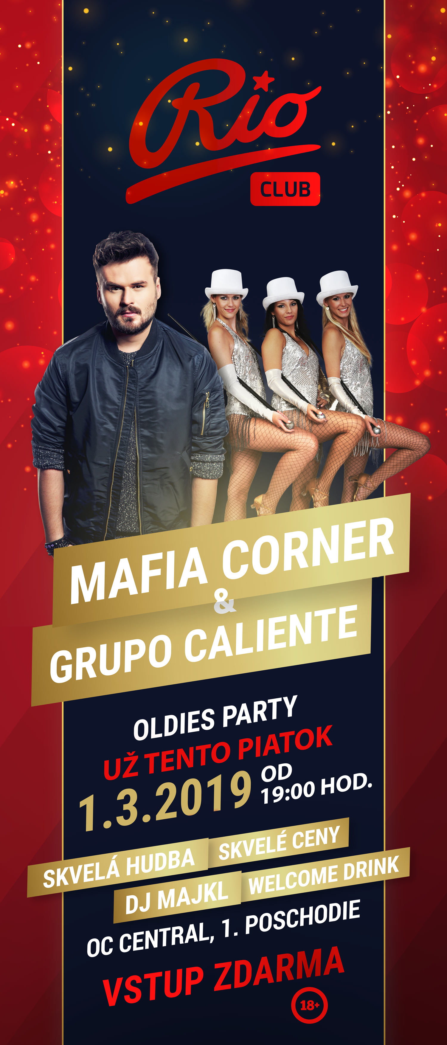 Jedinečný program plný live hudby s kapelou Mafia Corner, sexi tanečnicami Grupo Caliente a DJ Majklom a jeho OLDIES hitmi.