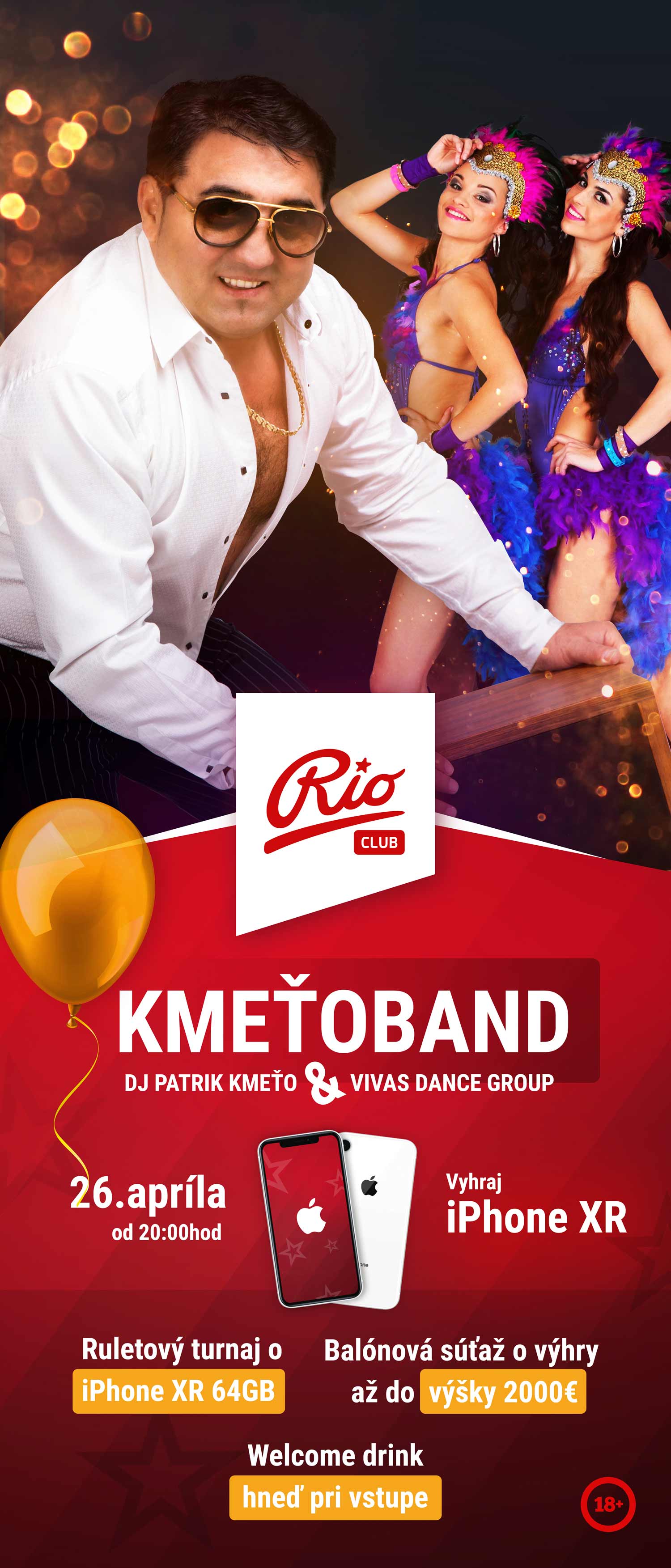 Toto musíte vidieť! Takúto piatkovú akciu ste dávno nemali možnosť užiť si! 26. 4. 2019 od 20:00hod sa chystá šialene skvelá otváracia party v RIO Clube v Považskej Bystrici! Tešiť sa môžete na vysoké výhry, welcome drink, ruletový turnaj o iPhone XR!!!! a zatancujete si na koncerte Kmeťoband. O celovečernú hudbu sa postará funky DJ Igor Kmeťo a sexi tanečnice Vivas Dance Group to roztočia po jedenástej večer. Vážne máte na piatok niečo lepšie? O tom silno pochybujeme:) 26. 04. 2019, RIO Club Považská Bystrica (nájdete nás pri Tescu). VSTUP ZDARMA!